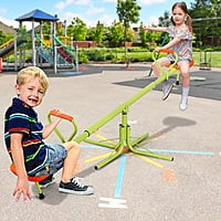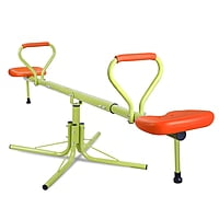[Double fun] With a 360 degree swivel added on seesawï¼now children can enjoy a seesaw not only goes up and downï¼But also can turn like a merry-go-round. [Ergonomics Design]The easy grip handles and comfortable seats make the seesaw a backyard favorite for any fun-loving kids. [Bright Color]The PVC Powder-coated steel to resist rusting, and UV-protected polyethylene plastic to reduce heat retention, fading, and discoloration.To Keep Attractive colors to inspire kids to play. [Heavy-Duty] Durable Steel tubing ensures provide years of fun. Max Weight Capacity 99 LBs per seat or 200 LBs in total. [Space Saving] Frame adjustable from 49" to 76â³to accommodate when Room space is little. [For Safety]Stopper at the bottom of each seat for added safety and stability.ASTM, TUV/GS and CE Certified [Perfect for Kids] Ideal Fun & Exercise safely for Child,Encourage kid to enjoy Outdoor Adventures.Ompatible seamlessly with any décor of your room or Backyard. Specification: Material: Plastic & Steel Tube Heightï¼24 inches Lengthï¼49 - 76 inches Max Capacity: 200 LBs Recommended for ages 3-7