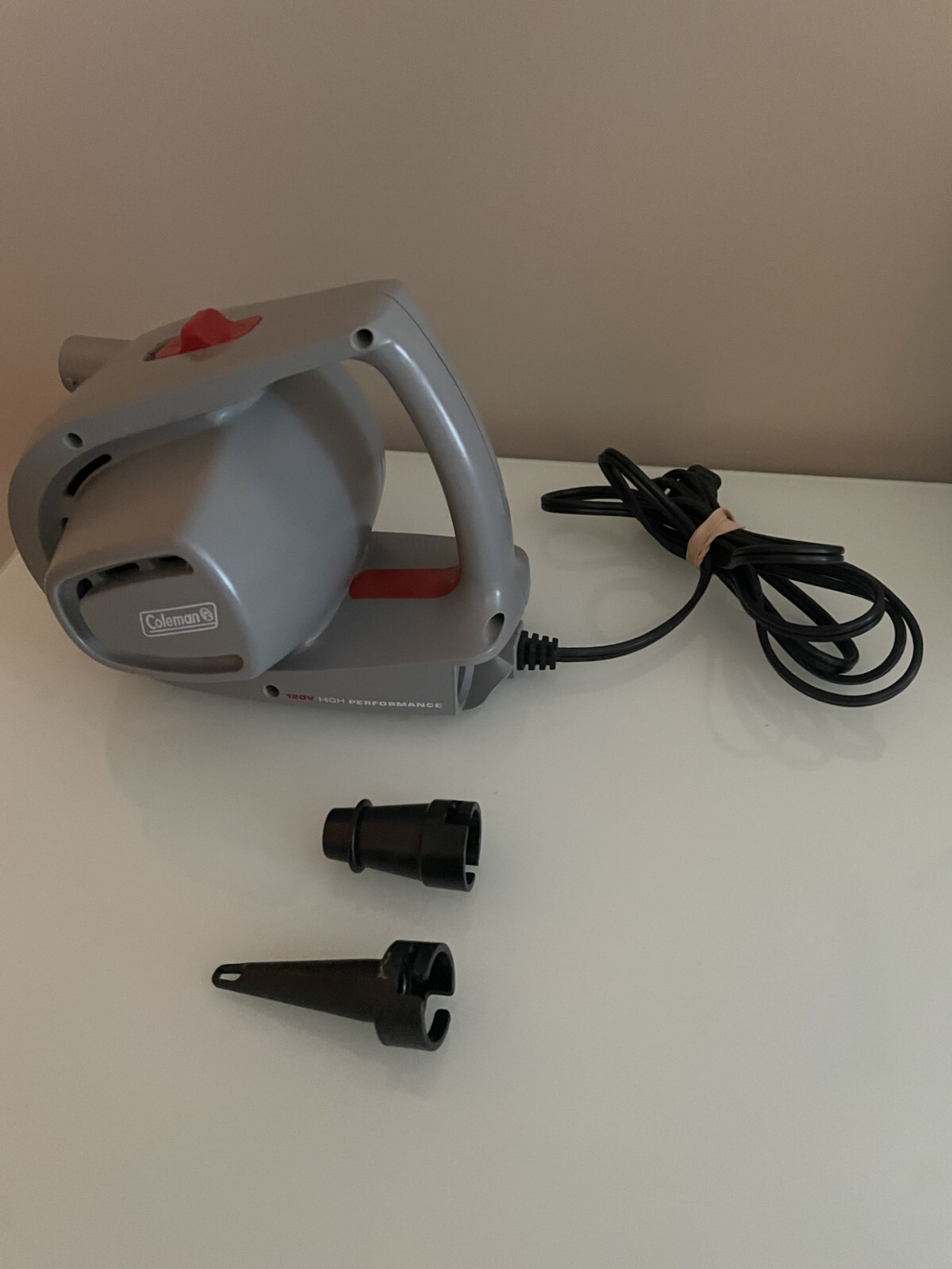 Coleman High Performance Electric Air Pump 120V Inflates and deflates Can be used for any brand of airbed or other inflatable Preowned, very good condition. Great for indoor air mattresses for guests, or for camping!
